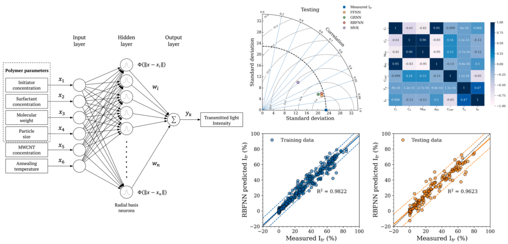 1) B. Demirbay, D. Bayram Kara, Ş. Uğur, Multivariate regression (MVR) and different artificial neural network (ANN) models developed for optical transparency of conductive polymer nanocomposite films, Expert Systems with Applications 207, 2022, pp. 117937.